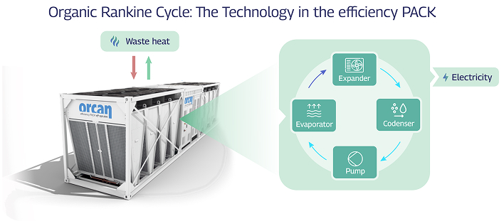 Repurposed waste heat for 1 MW energy generation via an Organic Rankine Cycle machine.