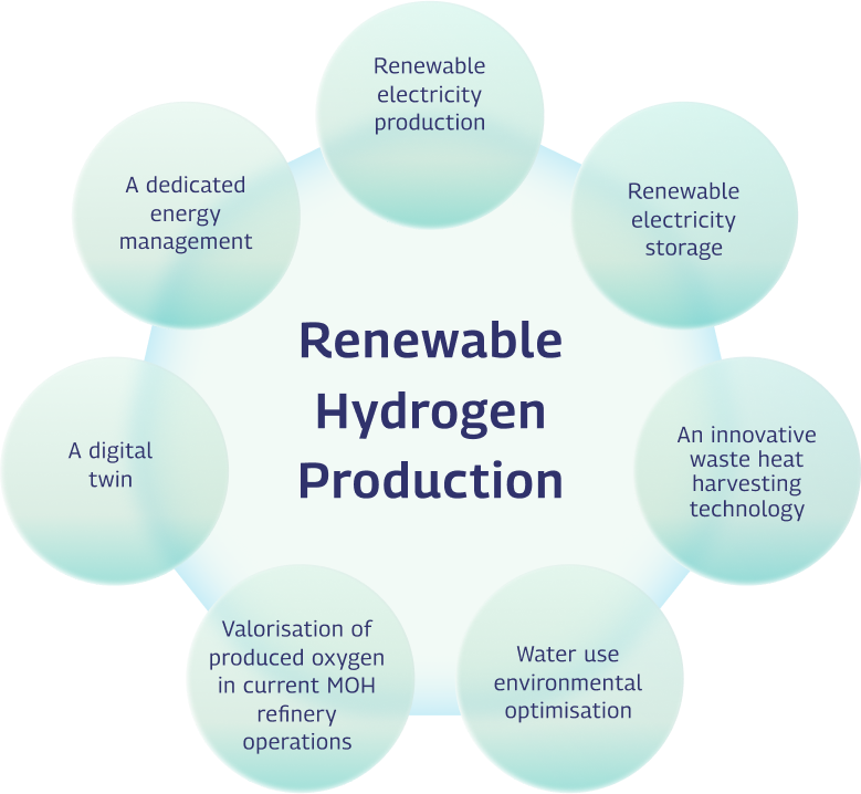 Its scope is to demonstrate the integration of a first of-its-kind renewable hydrogen production facility at industrial scale in South-East Europe: a renewable hydrogen electrolysis plant within MOH’s Corinth refinery, originally designed at 30 MW and now being implemented at 50 MW capacity.
